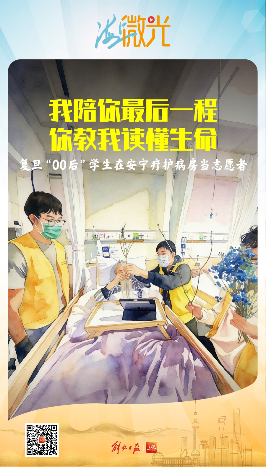 复旦大学华山临床医学院学生在安宁疗护病房陪伴患者。 受访者供图